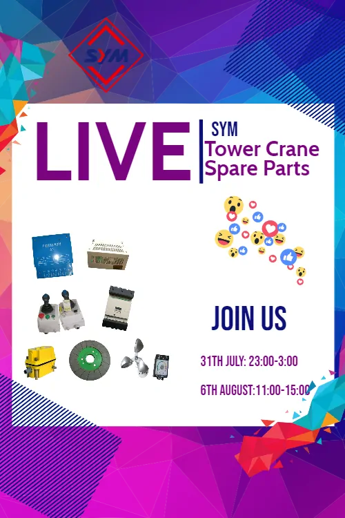 SYM hoist and tower crane equipment, will hold our live show. During the time, we will introduce several tower crane spare parts at all aspects, if you have any question, come to us, we will help you solve particularly. https://symtowercrane.en.alibaba.com Click and join us!
