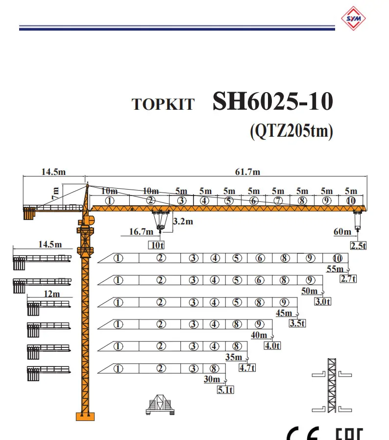 SH6025-10 QTZ205tm Topkit Tower Crane